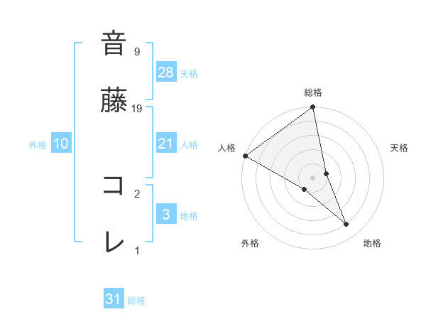 音藤 コレさんの総格は31画の5点!
