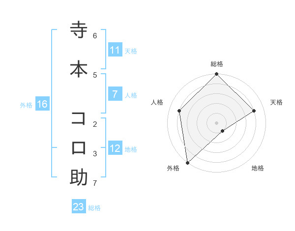 寺本 コロ助さんの総格は23画の5点!