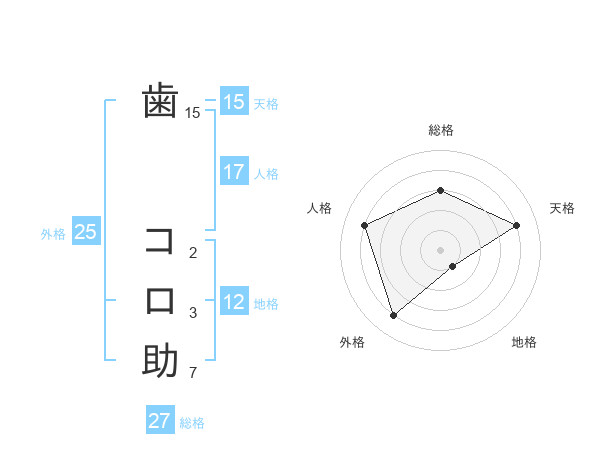 歯 コロ助さんの総格は27画の3点!