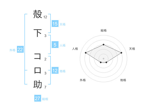 殻下 コロ助さんの総格は27画の3点!