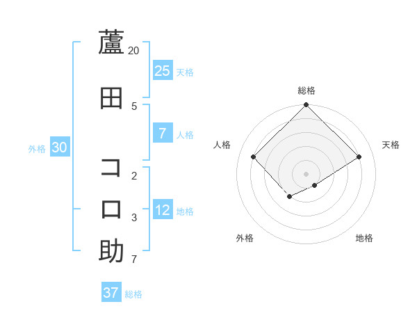蘆田 コロ助さんを姓名の画数から五運を鑑定
