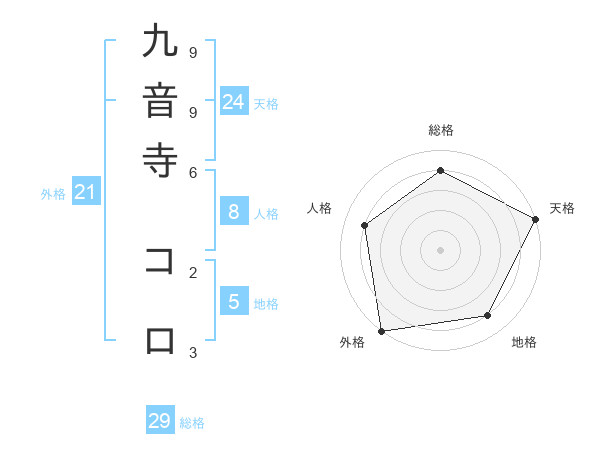 九音寺 コロさんの総格は29画の4点!