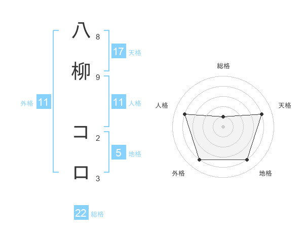 八柳 コロさんの総格は22画の1点!
