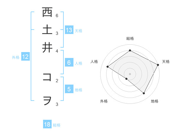 西土井 コヲさんの天格は13画の5点!