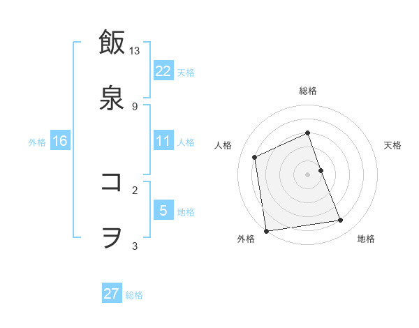 飯泉 コヲさんの外格は16画の5点!