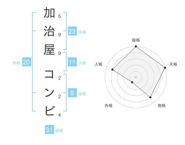 加治屋 コンビさんを姓名の画数から五運を鑑定