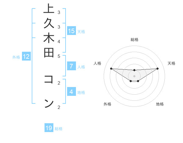 上久木田 コンさんの天格は15画の4点!