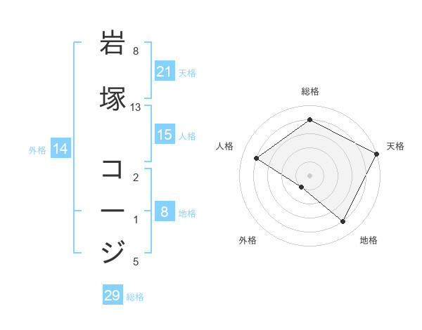 岩塚 コージさんの総格は29画の4点!