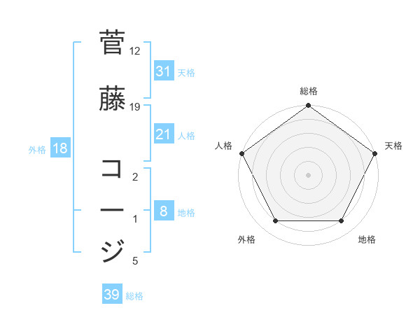菅藤 コージさんを姓名の画数から五運を鑑定