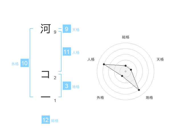 河 コーさんの総格は12画の1点!