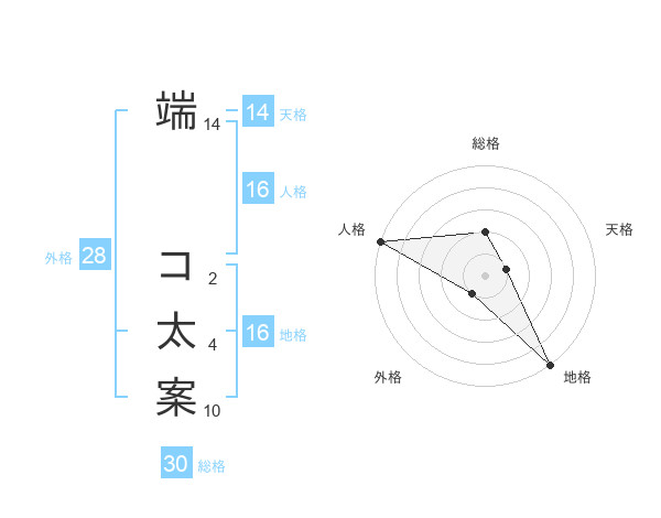 端 コ太案さんの地格は16画の5点!