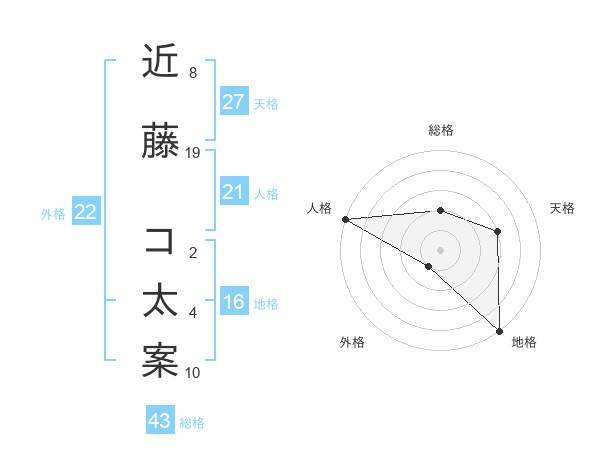 近藤 コ太案さんを姓名の画数から五運を鑑定