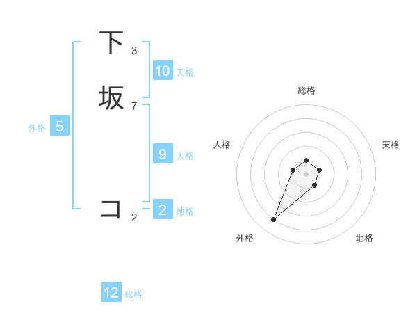 下坂 コさんの総格は12画の1点!