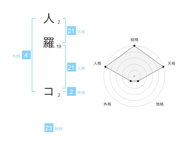 人羅 コさんの天格は21画の5点!
