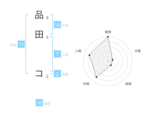 品田 コさんの総格は16画の5点!