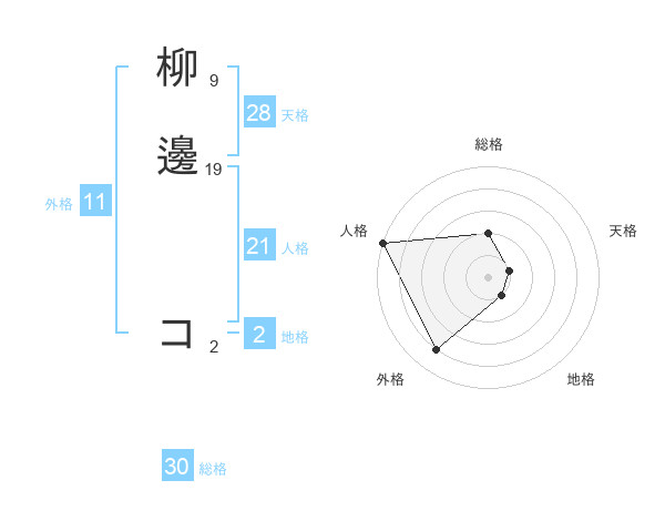 柳邊 コさんの総格は30画の2点!