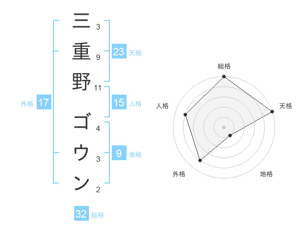三重野 ゴウンさんの総格は32画の5点!
