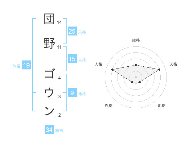 団野 ゴウンさんを姓名の画数から五運を鑑定