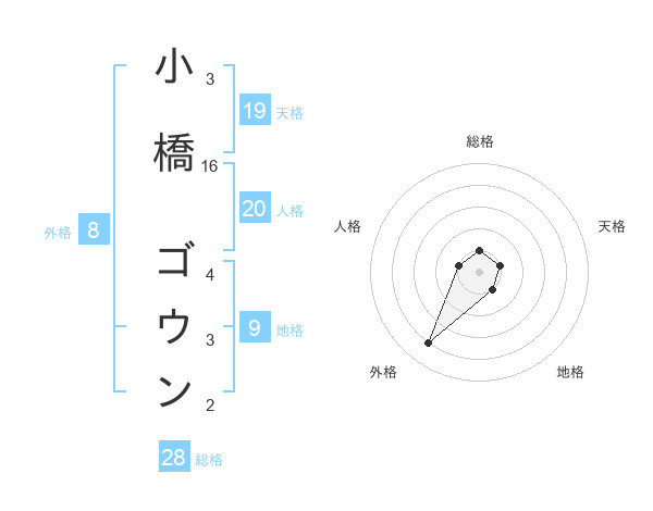 小橋 ゴウンさんを姓名の画数から五運を鑑定