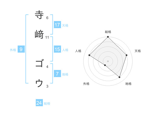 寺﨑 ゴウさんの総格は24画の5点!