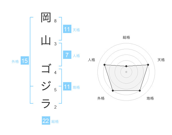 岡山 ゴジラさんを姓名の画数から五運を鑑定