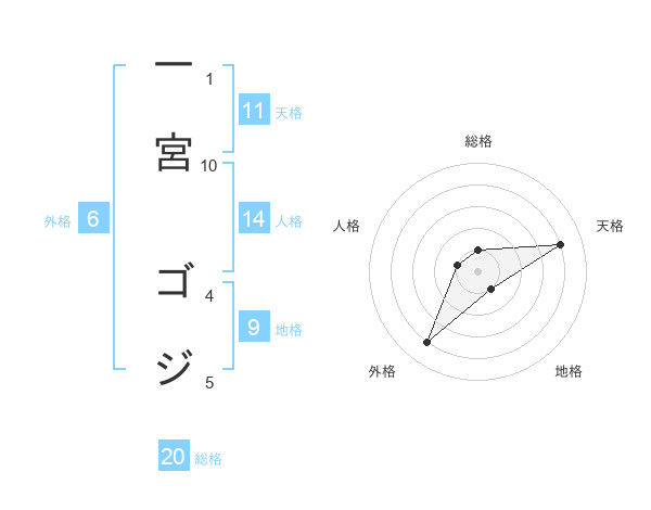 一宮 ゴジさんの総格は20画の1点!
