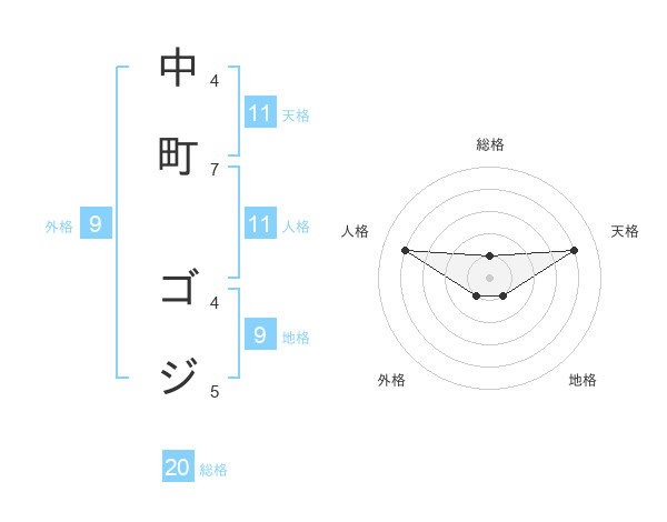 中町 ゴジさんの総格は20画の1点!