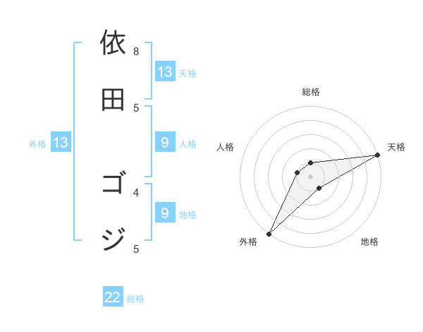 依田 ゴジさんを姓名の画数から五運を鑑定