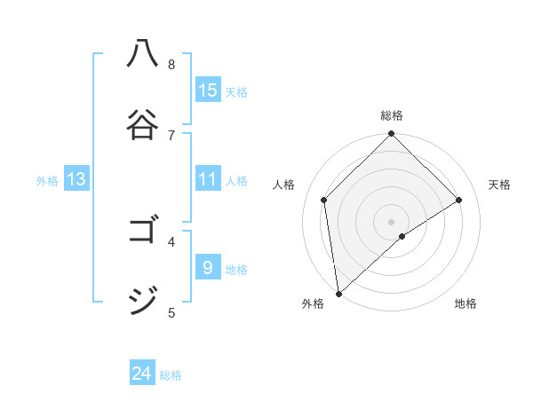 八谷 ゴジさんを姓名の画数から五運を鑑定