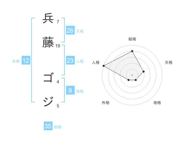 兵藤 ゴジさんの総格は35画の4点