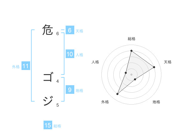 危 ゴジさんの総格は15画の4点!