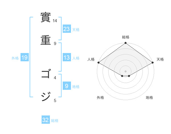 實重 ゴジさんの天格は23画の5点!