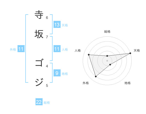 寺坂 ゴジさんの外格は11画の4点!