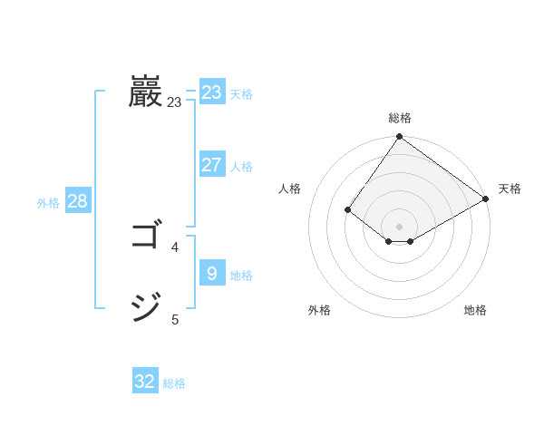 巖 ゴジさんの天格は23画の5点!