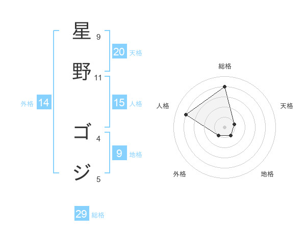 星野 ゴジさんを姓名の画数から五運を鑑定