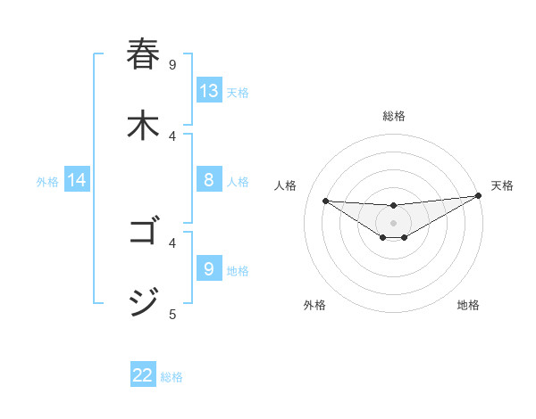 春木 ゴジさんを姓名の画数から五運を鑑定