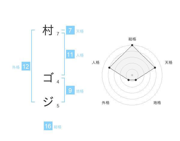 村 ゴジさんの総格は16画の5点!