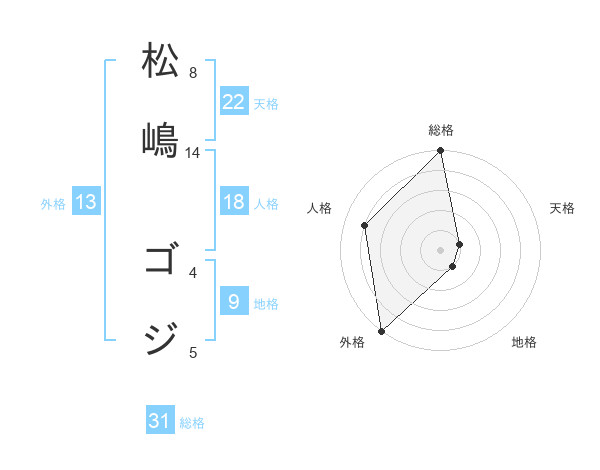 松嶋 ゴジさんを姓名の画数から五運を鑑定