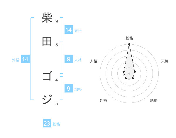 柴田 ゴジさんを姓名の画数から五運を鑑定
