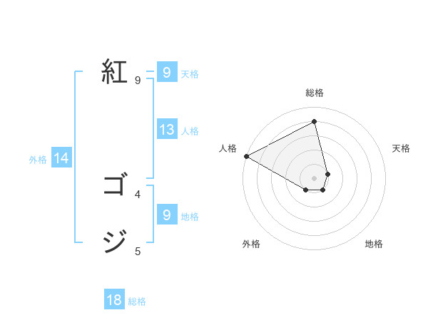 紅 ゴジさんの天格は9画の1点!