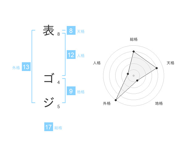 表 ゴジさんの総格は17画の4点!