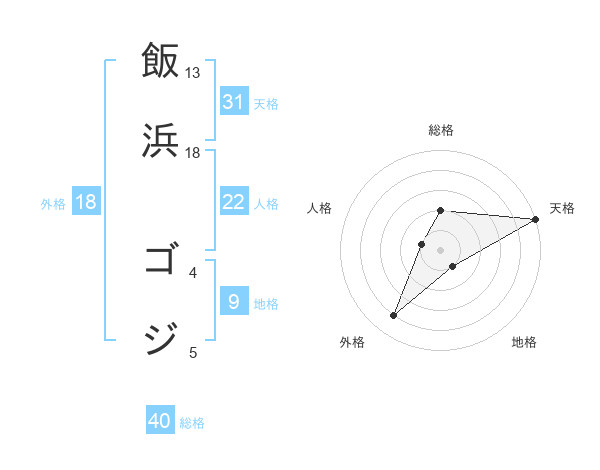飯浜 ゴジさんを姓名の画数から五運を鑑定