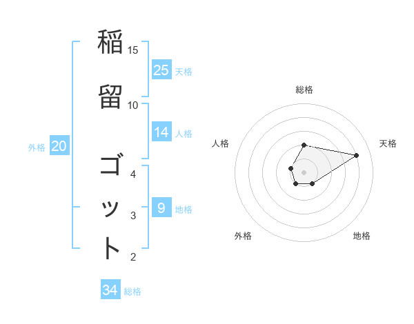 稲留 ゴットさんの天格は25画の4点!