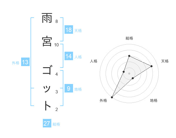 雨宮 ゴットさんを姓名の画数から五運を鑑定