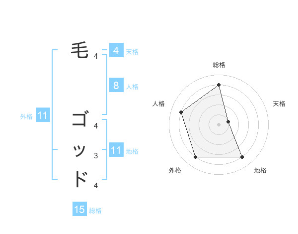 毛 ゴッドさんの地格は11画の4点!