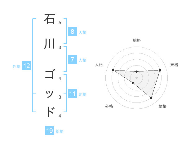石川 ゴッドさんを姓名の画数から五運を鑑定