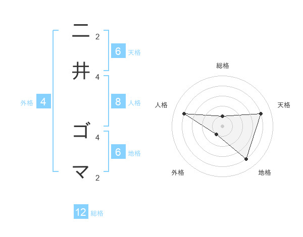 二井 ゴマさんの天格は6画の4点!