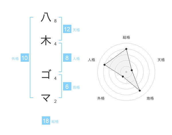 八木 ゴマさんを姓名の画数から五運を鑑定