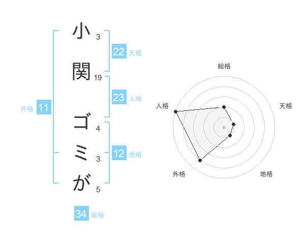 小関 ゴミがさんを姓名の画数から五運を鑑定
