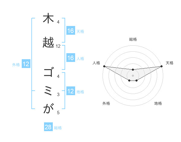 木越 ゴミがさんの天格は16画の5点!